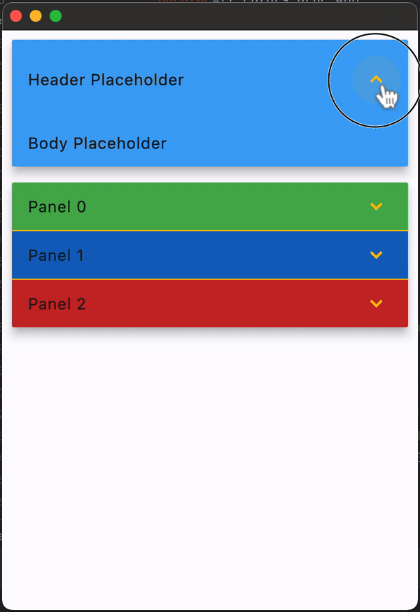 controls- A list of panels to display.divider_color- The color of the divider when flet.ExpansionPanel.expanded isFalse.elevation- Defines the elevation of the controls, when expanded.expand_icon_color- The color of the icon.expanded_header_padding- Defines the padding around the header when expanded.spacing- The size of the gap between the controlss when expanded.